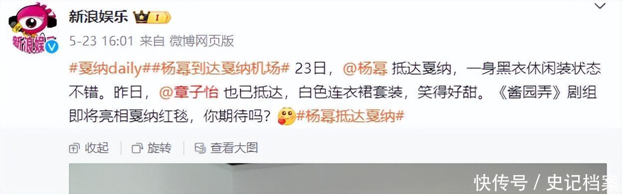 新浪文娱官方微博2024年5月23日发布的对于“杨幂抵达戛纳”的微博